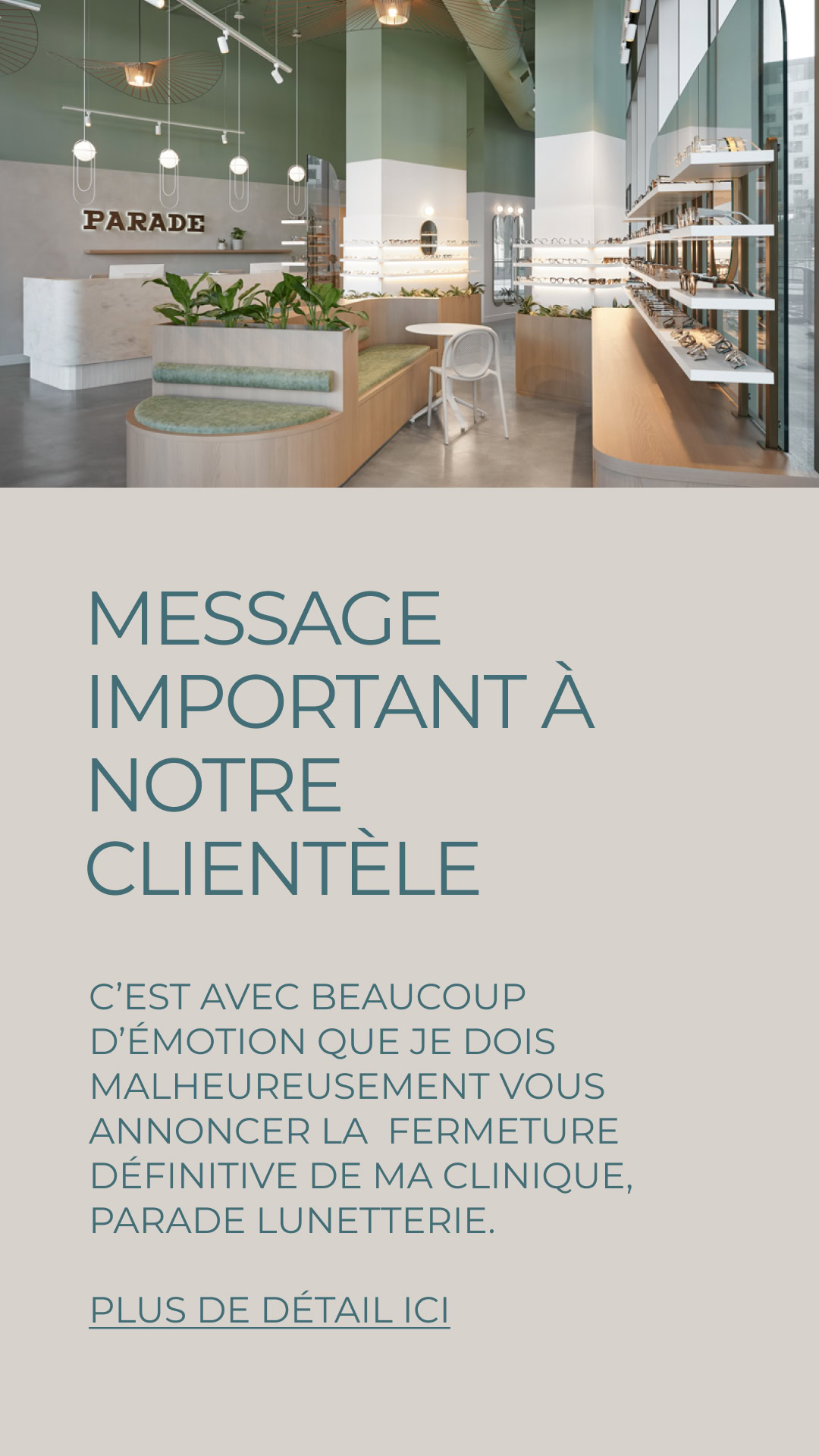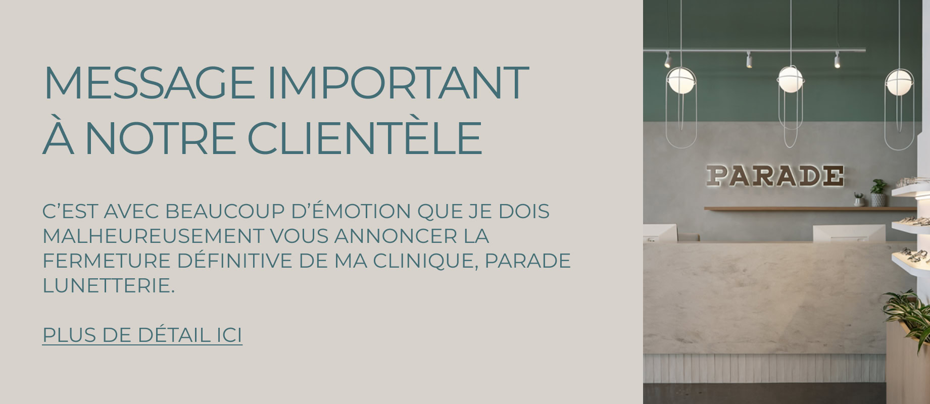 Chez Parade, l’expérience se vit sur place, avec nous. C’est notre raison d’être. Pour que vos lunettes répondent parfaitement à vos besoins, nous vous accompagnons tout au long du processus afin de vous offrir une vision et un confort optimal.