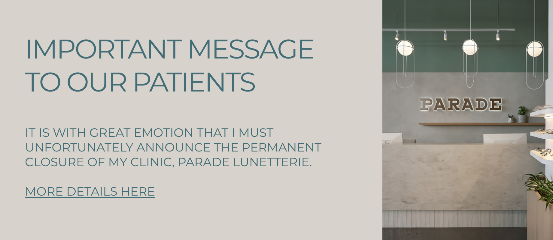 At Parade, the experience is lived in person, with us. Our purpose is to ensure that your glasses meet your needs perfectly. We support you throughout the process to provide you with optimal vision and comfort.